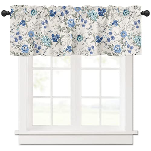 Cantonnières de Rideau à Motif Floral Bleu Printemps été pour fenêtre de Cuisine, Ferme, Gris, Blanc, Campagne française, 1 Panneau, Rideaux Courts de 137 x 45,7 cm pour décoration de Chambre à