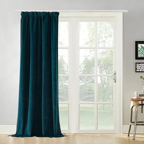 Joydeco Rideau Velours Bleu Vert 330g/m² avec Revêtement 100% Anti-Lumineux Format Personnalisé 1 Panneau