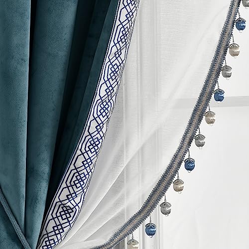 Lush Decor Rideau de fenêtre de Luxe Vintage en Velours et Transparent avec Bordure à Pompons (Simple) - 213,4 x 106,7 cm (L x l) - Bleu