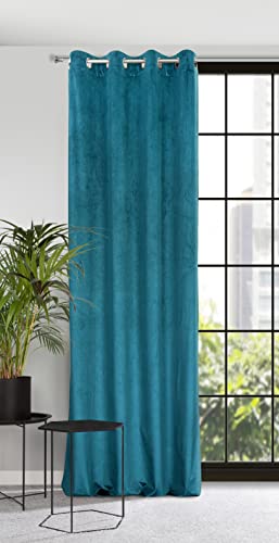 ED ENJOY HOME Rideau Thermique Occultant avec Œillets, Bleu Canard, 140x260cm, 100% Polyester, Velours, Doublure Polaire, Collection Velvet