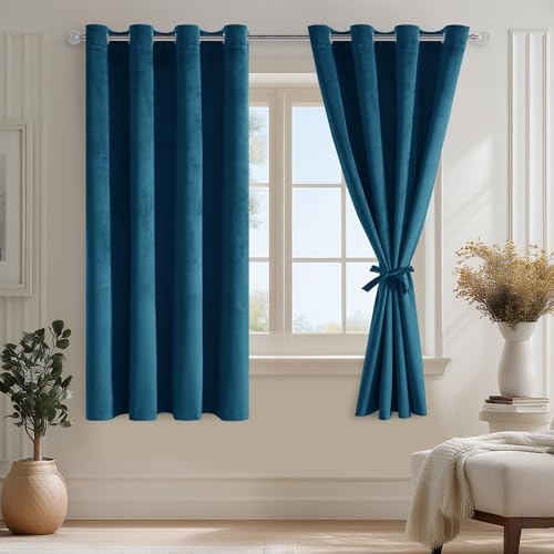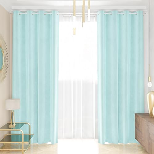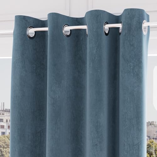 PONY DANCE Rideau Bleu Canard - Rideaux Velours Lourd Anti Froid Thermique pour Enfant Chambre/Ado, Doux Opacité Décoration de Fenêtre/Noël avec Oeillets, L 132 x H 260 cm, 2 Panneaux