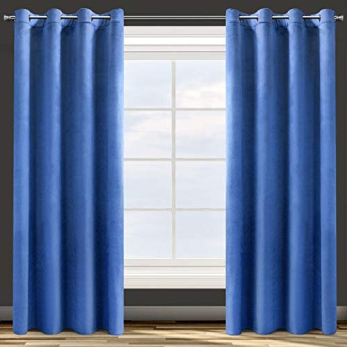 DWCN Rideau Velours 140L X 280H cm Lot de 2, Semi-Occultant Thermiques Rideau à Oeillets avec 2 Embrasses, Moderne Doux Luxurious Rideaux Velours pour Chambre, Salon, Bureau, Hôtel, Bleu