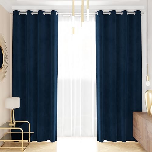 MIULEE Rideau Velours Bleu Marine Lot de 2, Super Doux Semi-occultant Rideaux à Oeillets, Rideau Thermique Velours pour Chambre Salon Décoration, Rideaux Hiver Chambre, 140X260 CM