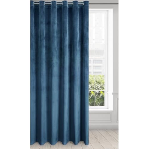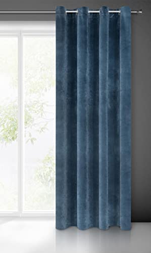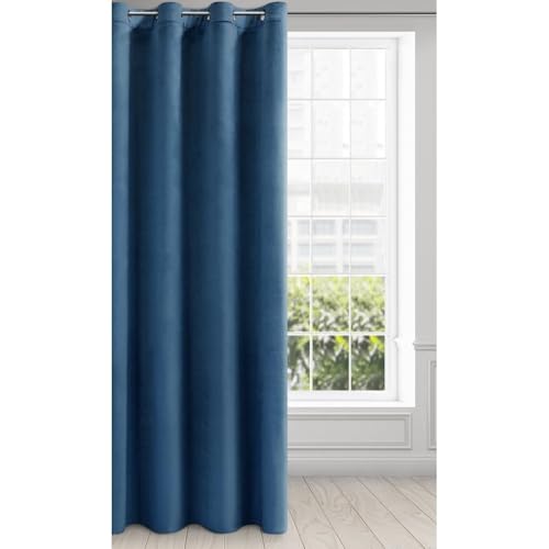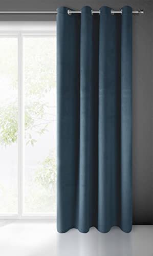 Eurofirany Rideau en Velours avec Oeillets - 1 Panneau, Traitement de Fenêtre Occultant, Rideaux pour Chambre, Cuisine, Salon, Super Doux, 140x250 cm, Bleu Foncé
