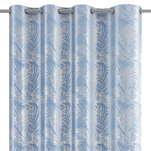 AmeliaHome Rideau Aspect Velours 140 x 245 cm 1 pièce Rideau à œillets en Velours Décoration de fenêtre Motif Feuilles Silverleaves Bleu argenté