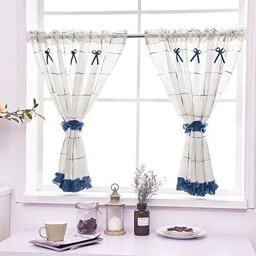 Yujiao Mao Rideau Brise-bise Imitation Lin Bleu à Carreaux Style champêtre et Minimaliste pour Petites fenêtres de Cuisine Bleu LxH 90x45cm
