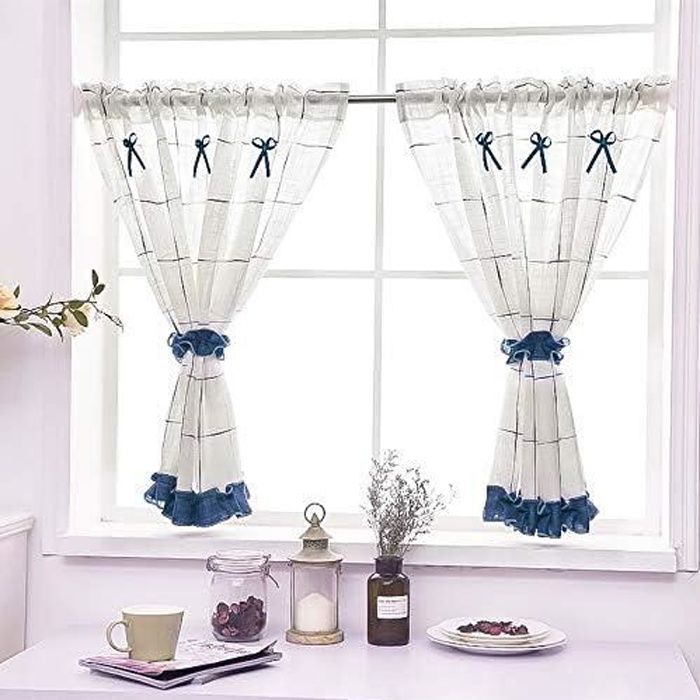 Yujiao Mao Rideau Brise-bise Imitation Lin Bleu à Carreaux Style champêtre et Minimaliste pour Petites fenêtres de Cuisine Bleu LxH 140x60cm