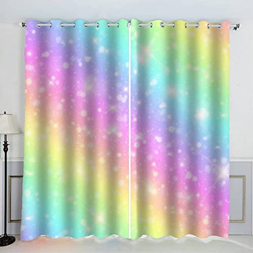 AKATIE Rideaux Arc-en-Ciel Coloré Rideau Occultant Chambre Fille Garcon Rideaux Chambre Ado Isolation Thermique et Réduction du Bruit Rideau (200x200 cm)