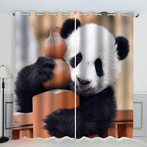 AKATIE Rideaux Panda Animal Panda Rideau Occultant Chambre Fille Garcon Rideaux Chambre Ado Isolation Thermique et Réduction du Bruit Rideau (200x200 cm)