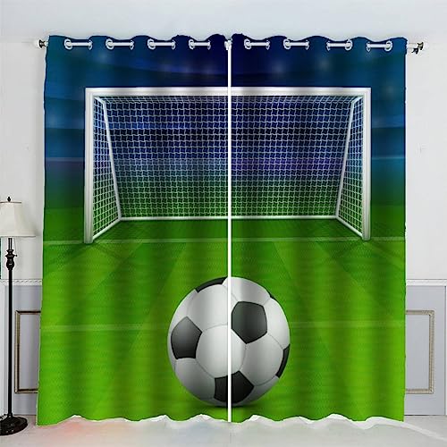 AKATIE Rideaux Football Terrain De Foot Vert Rideau Occultant Chambre Fille Garcon Rideaux Chambre Ado Isolation Thermique et Réduction du Bruit Rideau (200x200 cm)
