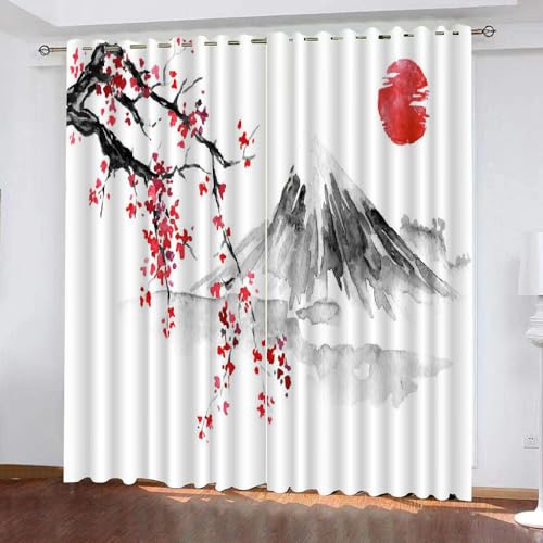 MEVASA Rideaux Style Japonais Paysage Japonais Rideau Occultant Chambre Fille Garcon 2 Pièces Rideaux Chambre Ado Isolation Thermique et Réduction du Bruit Rideaux 183x214 cm LxH