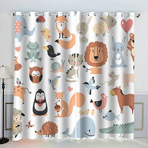 JIARKA Rideaux Animaux Sauvages. Dessin Animé Mignon Rideau Occultant Chambre Fille Garcon Rideaux Chambre Ado Isolation Thermique et Réduction du Bruit Rideaux 2 Pièces 91.5x214 cm