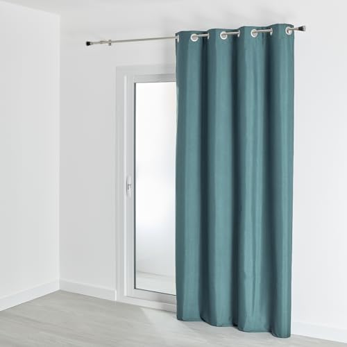 Homemaison QABANE - Rideau 100% Occultant Thermique Phonique Chiné - Polyester - Isolation Acoustique et Obscurité Totale - pour Chambre Salon Fenêtre Porte - 135 x 260 cm - Bleu Pétrole