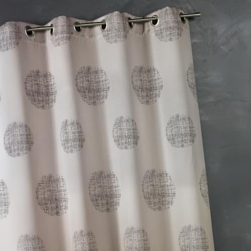 Homemaison - Rideau Jacquard Imprimé Rond Chiné - 100% Polyester - Tamisant et Isolant - Prêt-à-Poser avec Oeillets - Salon Chambre - 140 x 260 cm - Taupe