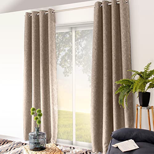 Home Maison QABANE - Rideau 100% Occultant Effet Chiné - Polyester - Isolation Thermique et Phonique avec Œillets - pour Chambre, Salon, Bureau - 140 x 180 cm - Beige
