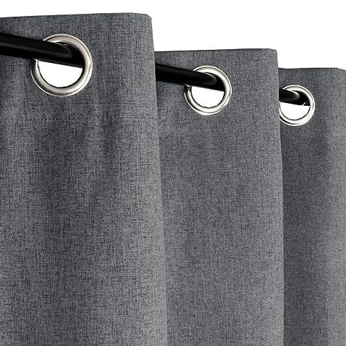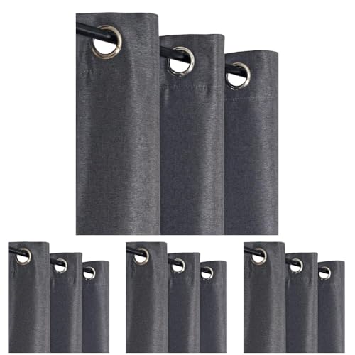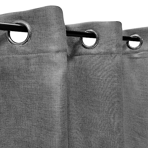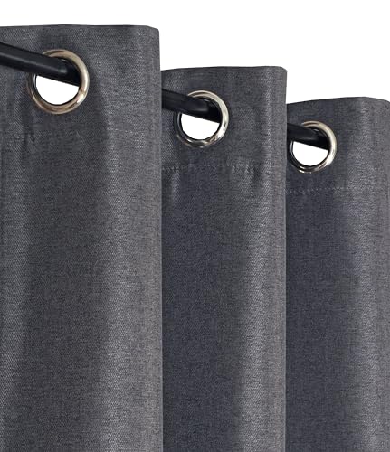 Atout Ciel Rideau Effet Lin chiné 100% occultant à œillets 140x240cm prêt a Poser, Gris Anthracite