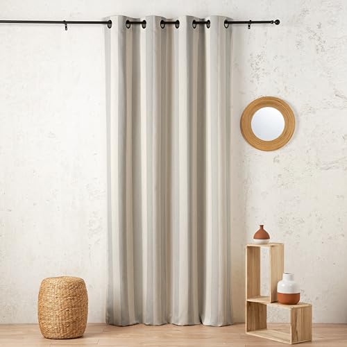 LINDER Rideau à Rayures Verticales - Tissé et Teint en France - Style Pop - Coloris Gris Chiné - œillets Canon de Fusil -145x280cm - 56% Polyester 42% Coton 2% Autres Fibres - Collection Sunset