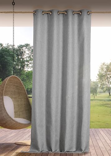 LINDER Rideau Outdoor déperlant - tissé et Teint en France - Finition Oeillets Canon de Fusil antioxydant - Coloris Granit Chiné - Dimensions 140x265cm - 100% Polypropylène - Collection Rooftop