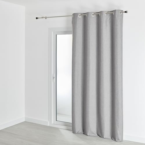 Atout Ciel Rideau chiné Effet Lin 100% occultant à œillets 140x240cm prêt a Poser, Gris