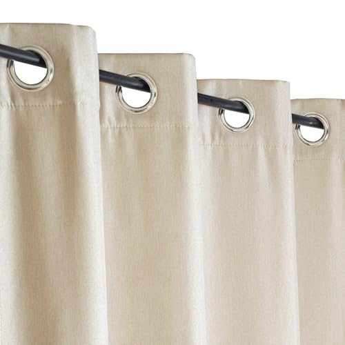 LINDER Rideau Outdoor déperlant - tissé et Teint en France - Finition Oeillets Canon de Fusil antioxydant - Coloris Sablé Chiné - Dimensions 140x265cm - 100% Polypropylène - Collection Rooftop