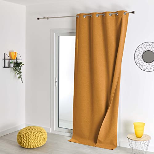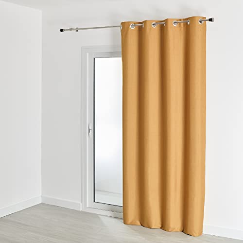Homemaison QABANE - Rideau 100% Occultant Thermique Phonique Chiné - Polyester - Isolation Acoustique et Obscurité Totale - pour Chambre Salon Fenêtre Porte - 135 x 260 cm - Jaune Ocre