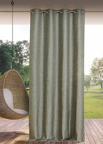 LINDER Rideau Outdoor déperlant - tissé et Teint en France - Finition Oeillets Canon de Fusil antioxydant - Coloris Kaki Chiné - Dimensions 140x265cm - 100% Polypropylène - Collection Rooftop