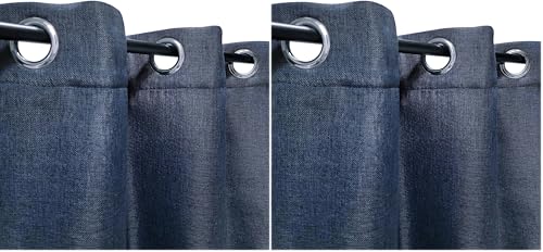 Atout Ciel Rideau Thermique Effet Lin chiné doublé Polaire Ton sur Ton à œillets 135x240cm prêt a Poser, Bleu Marine (Lot de 2)