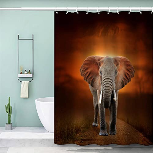 VASENA Rideau de Douche 120x200 éléphant Coucher De Soleil Animaux Africains Rideaux de Douche Résistant À la Moisissure Imperméable Lavable pour Salle de Bain avec 12 Crochets
