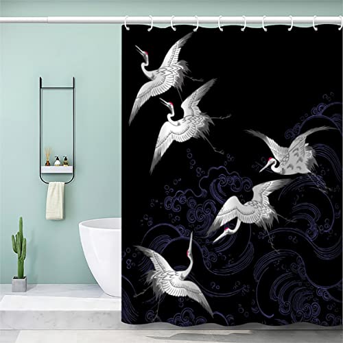 Style Japonais Rideau de Douche 120x200 cm Moderne intéressant Rideau de Douche Grue Animal Lavable Haute Qualité Moule Résistant Antibactérien Rideau de Douche Hauteur 200