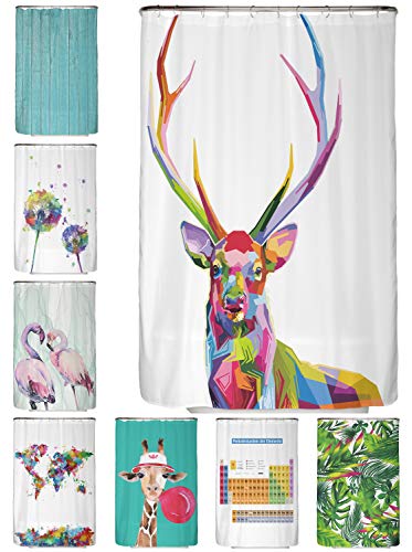 arteneur® - Rideau de Douche 120x200 – Rideaux de Douche en Tissu Polyester Épais Lavable en Machine avec Anti Moisissure et Imperméable Inclus 12 Crochets Rideau (Cerf de Couleur)