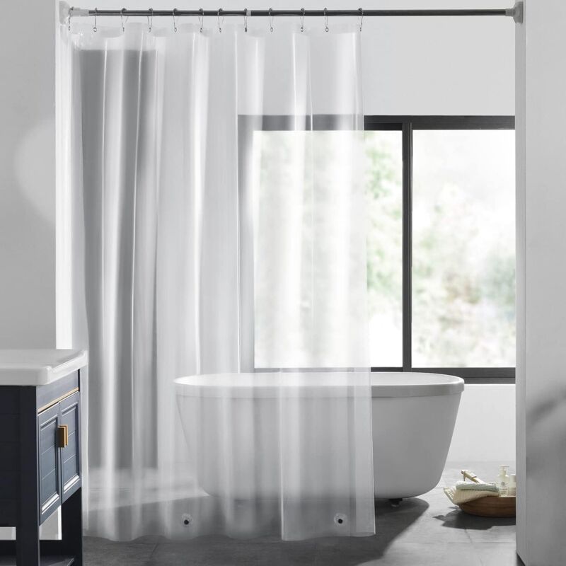 Rideau de douche transparent blanc, étanche, 100 % PEVA avec crochets, Tissu, claire, 120x200cm