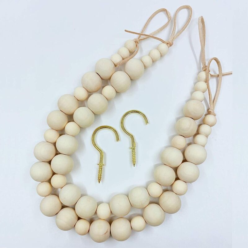 Embrasse de rideau en perles de bois, support de rideau en perles, style Boho, décoratif, avec crochets, pour salon - Sollbry