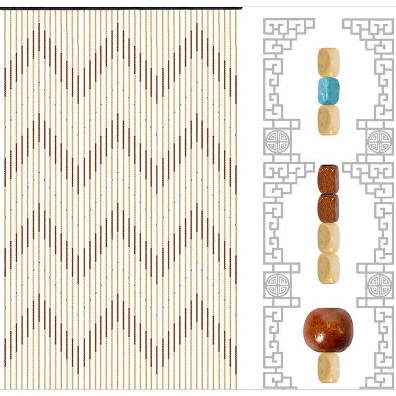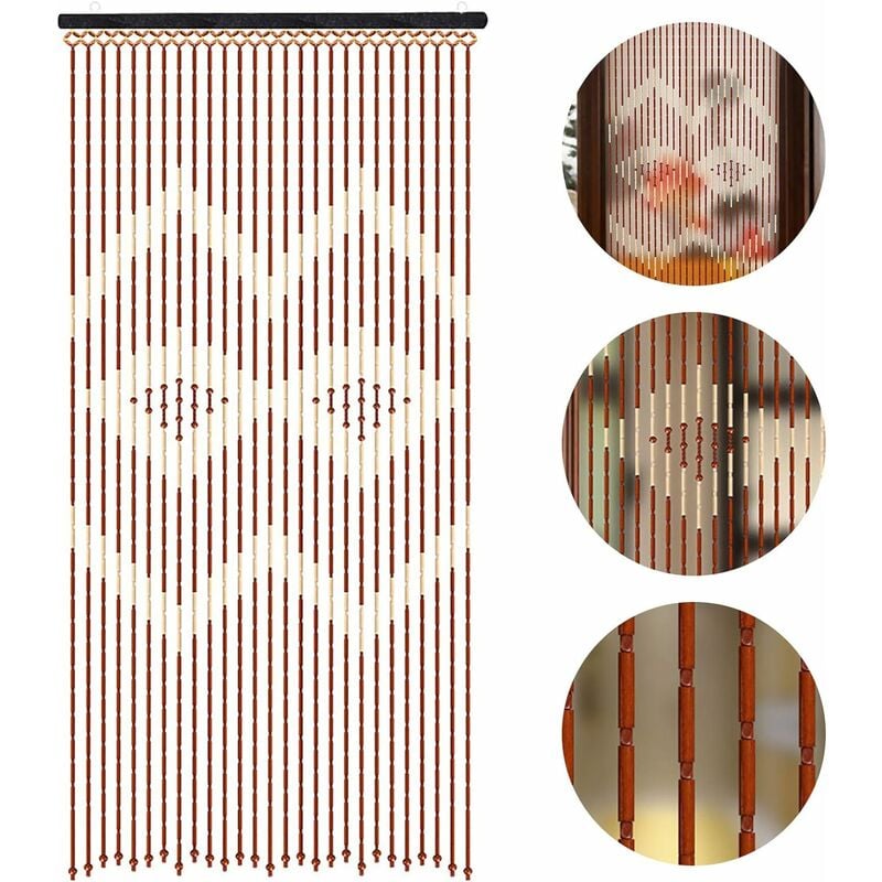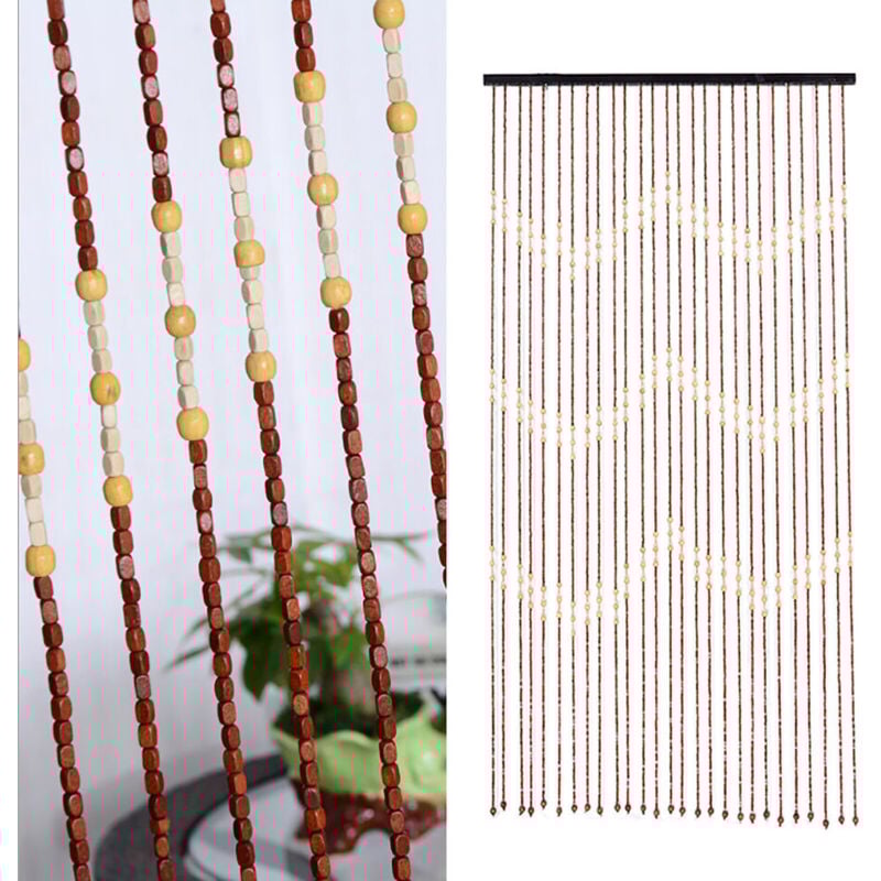 Rideau de porte à perles en bois - 90 x 175 cm - Rideau décoratif en perles de bambou - Rideau de porte