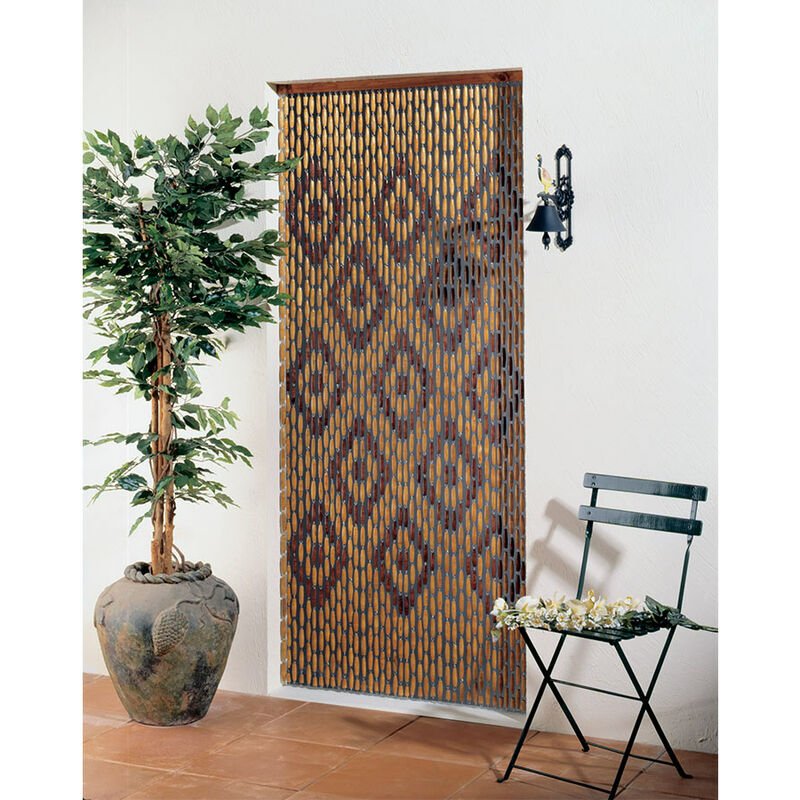 Générique Rideau de Porte en Perles Olives de Bois Verni avec Motifs Losanges 90 x 200 cm - Morel