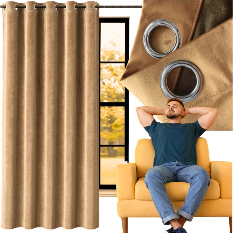 Rideau en velours épais avec œillets beiges et anneaux occultants, prêt à l'emploi