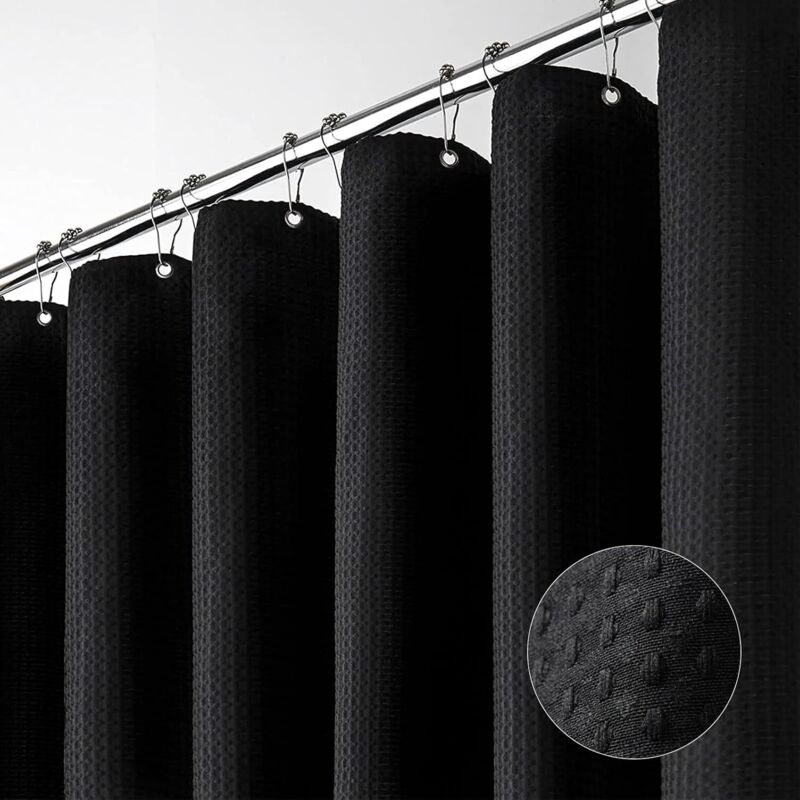Rideau de douche en tissu épais, rideau de douche de salle de bain de luxe, 1,8 m x 1,8 m, noir