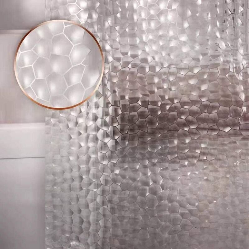 Rideau de douche épais en EVA résistant, petit format, motif pavés 3D, écologique, 178 x 178 cm (70 x 70 pouces) - Transparent