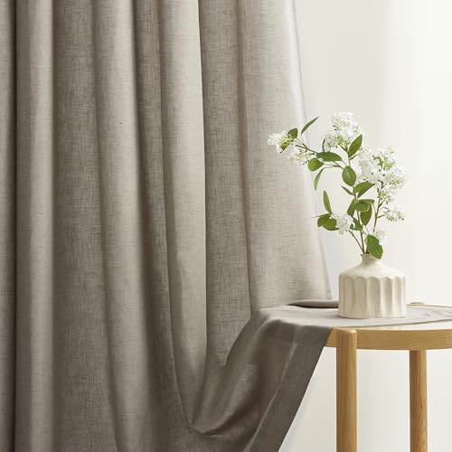 Topfinel Rideaux Voilages Burlywood Lin Coton Beige Translucides Rideau Fenetre Cuisine Moderne Rideau 140x260cm Décoration Salon Chambre Draperies Dressing Semi Occultant Intérieurs à Oeillets 2pc