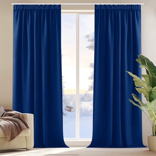 Deconovo Lot de 2 Rideaux Occultants Thermique Anti Froids et Phonique Rideau Fenetre Chambre Cuisine Court Rideau Salon Galon Fronceur 132x160cm Bleu Royal