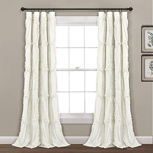 Lush Decor Serena Panneau de Rideau de fenêtre Simple, 137,2 x 213,4 cm (l x L), Ivoire – Motif Floral froncé – Rideaux à Volants pour Chambre à Coucher, Salon et Salle à Manger – Décoration