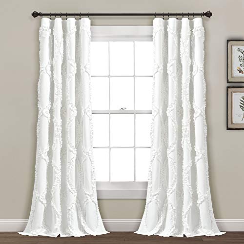 Lush Decor Serena Panneau de Rideau de fenêtre Simple, 137,2 x 213,4 cm (l x L), Blanc – Motif Floral froncé – Rideaux à Volants pour Chambre à Coucher, Salon et Salle à Manger – Décoration