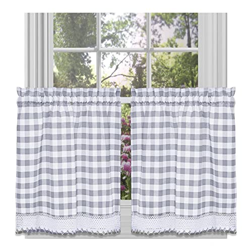 Achim (Weser Home Furnishings Buffalo Check Rideau de fenêtre, Gris, Tier Pair 58" x 36"