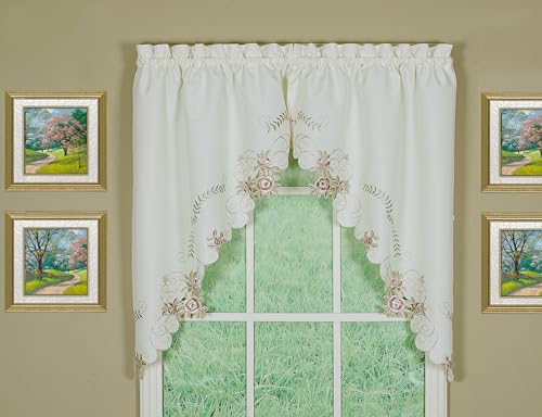 Lush Decor Lucia Cantonnière élégante Cascade pour Salon, Cuisine et Chambre à Coucher, Rideau de fenêtre en Polyester Doux, Simple - Ivoire (106,7 cm de Large x 45,7 cm de Long)