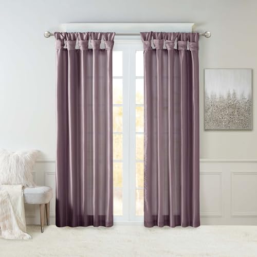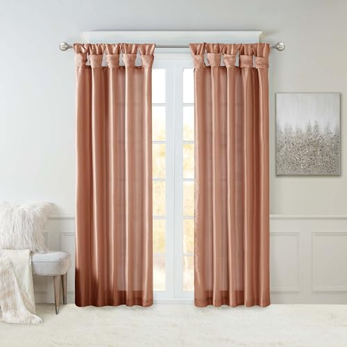 Madison Park Emilia Rideau simple en soie synthétique avec doublure d'intimité, languettes torsadées à faire soi-même, rideau de fenêtre pour salon, chambre à coucher et dortoir, 213,4 x 127 cm (l x L