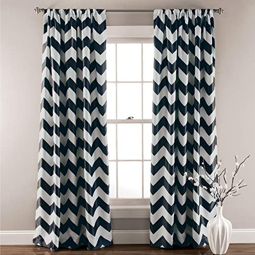 Lush Decor Salle de Chevron Rideau de fenêtre occultant Lit Ensemble, Noir, Panel Set 84" x 52"