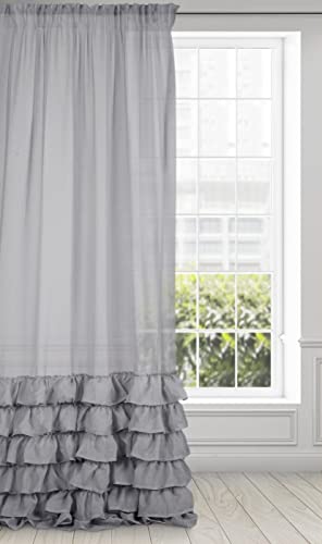 Eurofirany Dolly Rideau Gothique, Rideau Voilage Ruban à Volants, Rideau Transparent avec Galon Fronceur - 1 unité, Rideau de Fenêtre, pour Chambre à Coucher, Salon, 140x250 cm, Gris Acier