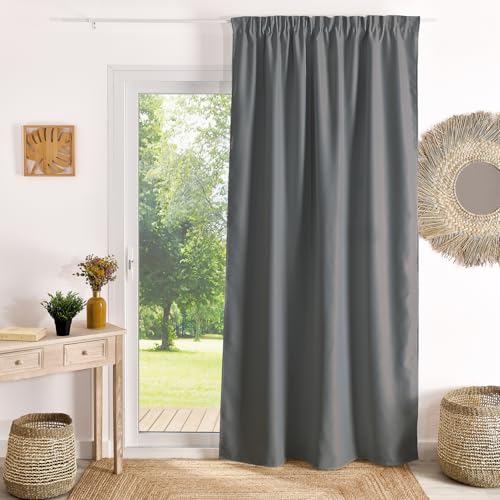 RESTILO Blackout Rideau occultant Galon Fronceur 140 x 270 cm 1 pièce Graphite Rideau décoratif Opaque pour fenêtre
