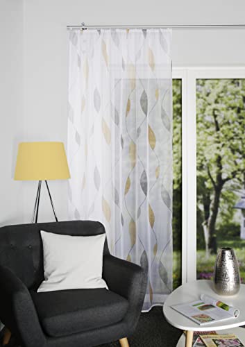 HOMEbasics 41462 Paolo Rideau à Galon fronceur Transparent imprimé | (Jaune, 245 x 140 cm)