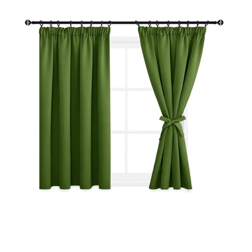 NICETOWN Rideaux Occultants Thermique Court, Décoration de Fenêtre Rideau Draperies Galon Fronceur Isolation Lumineux Tissu pour Maison Chambre, L 140 x H 145 cm, Sauge Vert, Lot de 2