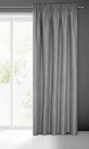 Eurofirany Essme Rideau Brillant à Galon fronceur Lisse Tendance élégant de qualité supérieure pour Chambre à Coucher, Salon, argenté 140 x 270 cm